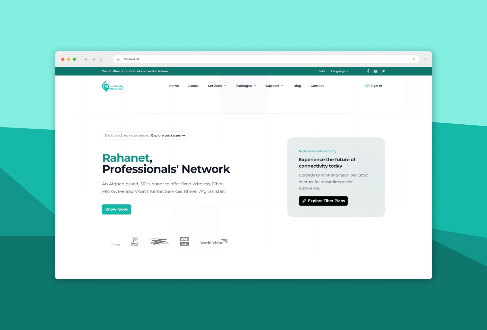 Rahanet ISP Services is a prominent internet service provider based in Afghanistan. They offer a wide range of internet connectivity solutions including fixed wireless, fiber optics, microwave, and V-Sat services across the nation. With the advent of digital transformation and increasing competition in the ISP sector, Rahanet aimed to revamp its website to align with the latest UX/UI trends, improve user experience, and provide enhanced accessibility features.